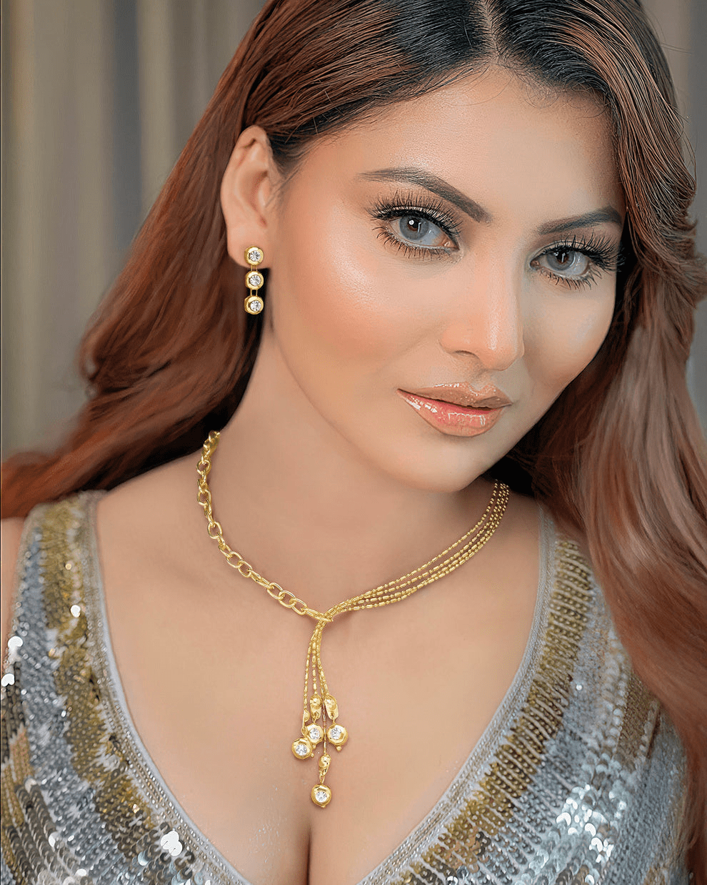 This Elegant Y-shaped necklace set, which features a sleek capsule-link chain and glittering crystal accents, will add to your elegance. The delicate yet eye-catching design creates a classy and elegant appeal as it falls elegantly along the neckline. With each movement, the glistening gems add a touch of brilliance and exquisitely capture the light. Ideal for both formal events and laid-back stylish ensembles, this piece skillfully combines classic glamor with contemporary minimalism. Complementing the necklace, the matching earrings provide a tasteful harmony of elegance and brightness. This jewelry set, which has been meticulously crafted, is a stunning option for individuals who value understated luxury. Whether worn alone or combined with additional items, this alluring set gives any ensemble a dash of elegance and brilliance.
